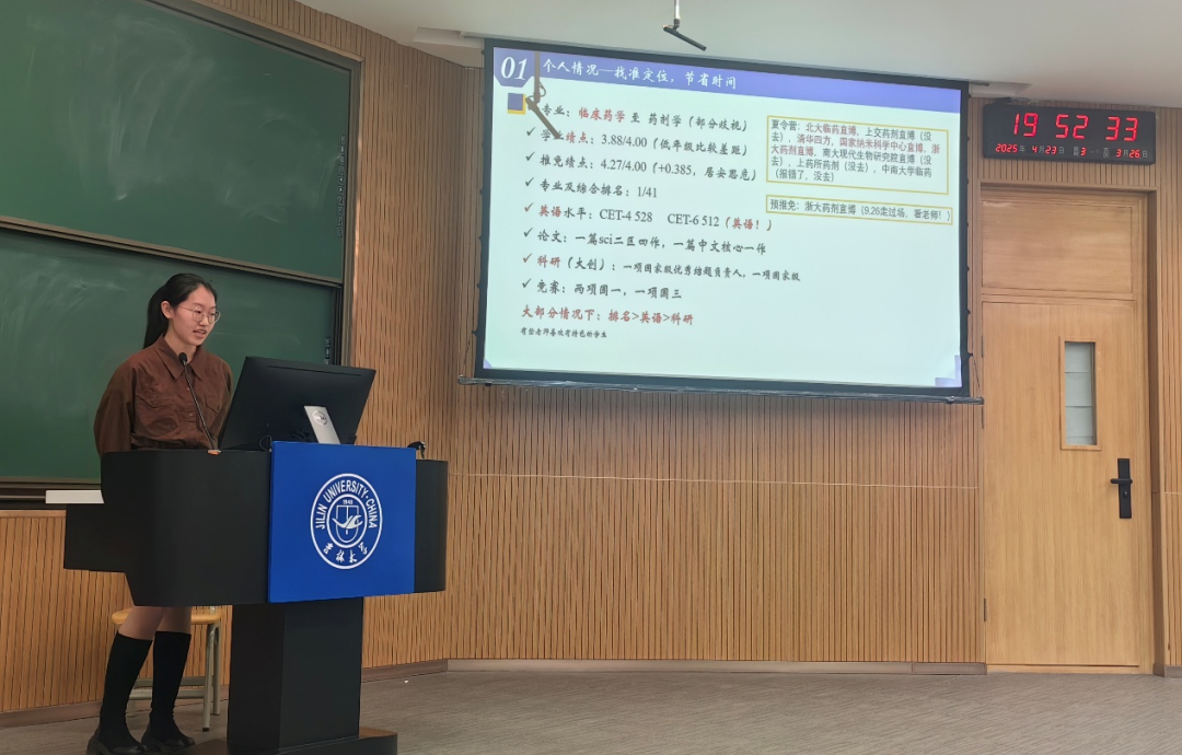 学生工作办公室积极开展学风建设项目“我‘药’对你说”,4月23日,2025年保研经验分享会在新民校区第二教学楼举行。分享会由学生工作管理委员会学业指导部梁嘉赟主持。
