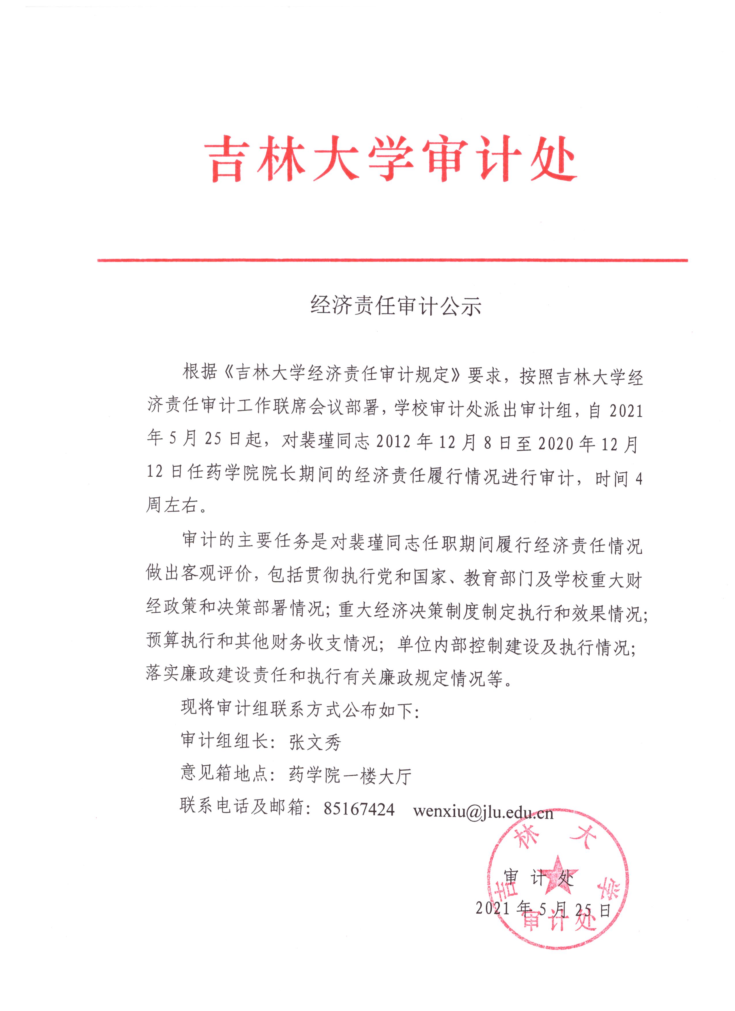 正妹AV 审计处关于经济责任审计公示
