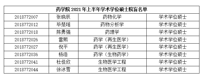 根据学校硕士学位论文抽查送审工作相关要求,学院将对未被学校抽查到的申请硕士学位论文按20%比例进行“双盲”评审,“双盲”评审论文份数为1份,现将“双盲”评审名单公示如下: