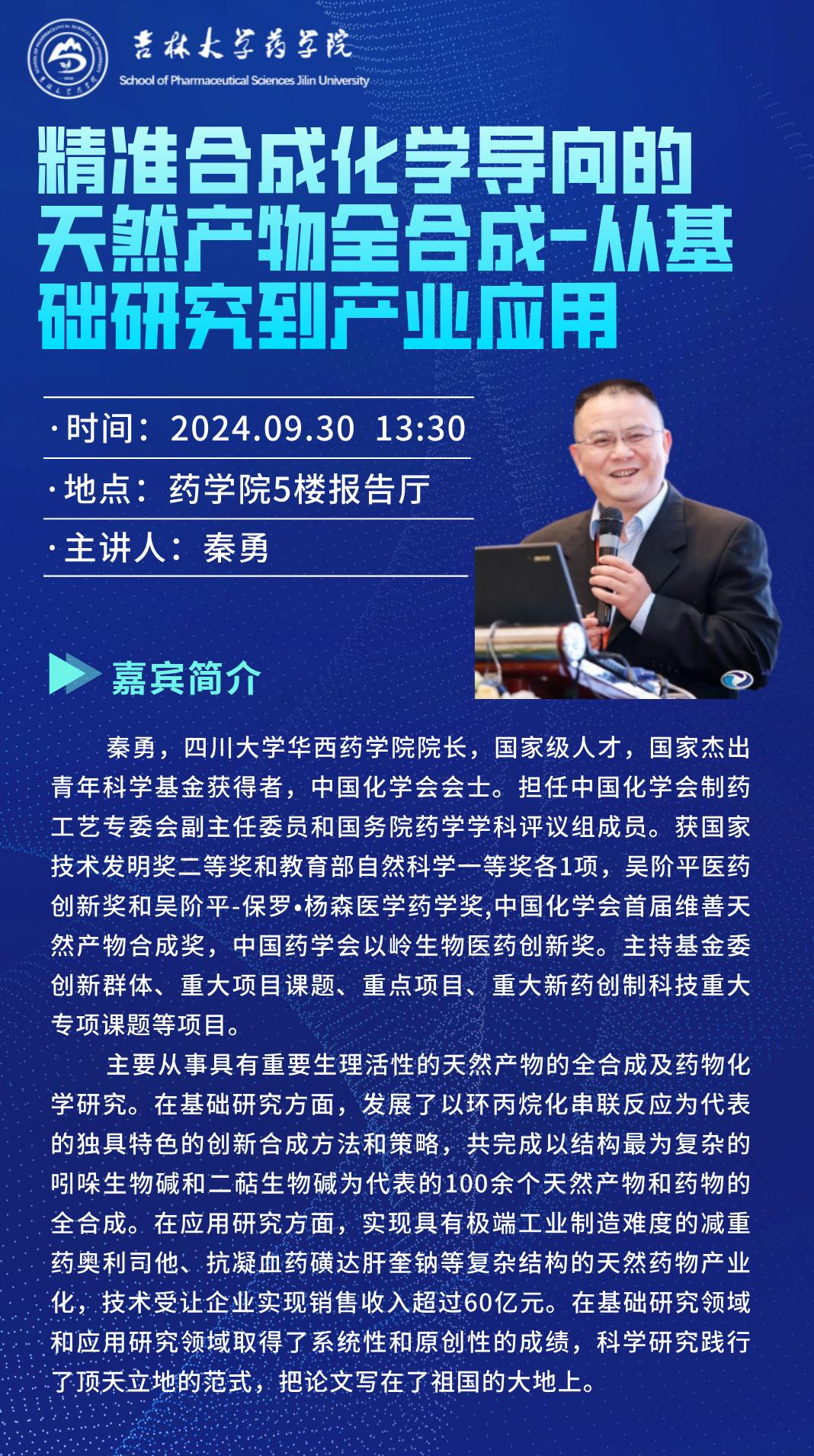正妹AV 学术报告会——精准合成化学导向的天然产物全合成—从基础研究到产业应用