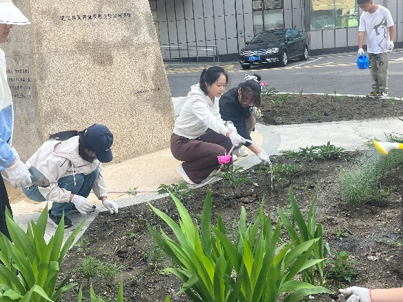和平校区劳动教育基地。在这片充满生机的土地上,同学们勤勤恳恳、脚踏实地,用心浇灌每一株药材;奋楫扬帆、实干笃行,用爱滋养每一寸土地。志愿者们自行分组进行了杂草拔除、垃圾清理等活动,并对花坛进行了简单美化,让每一株植物都茁壮成长。