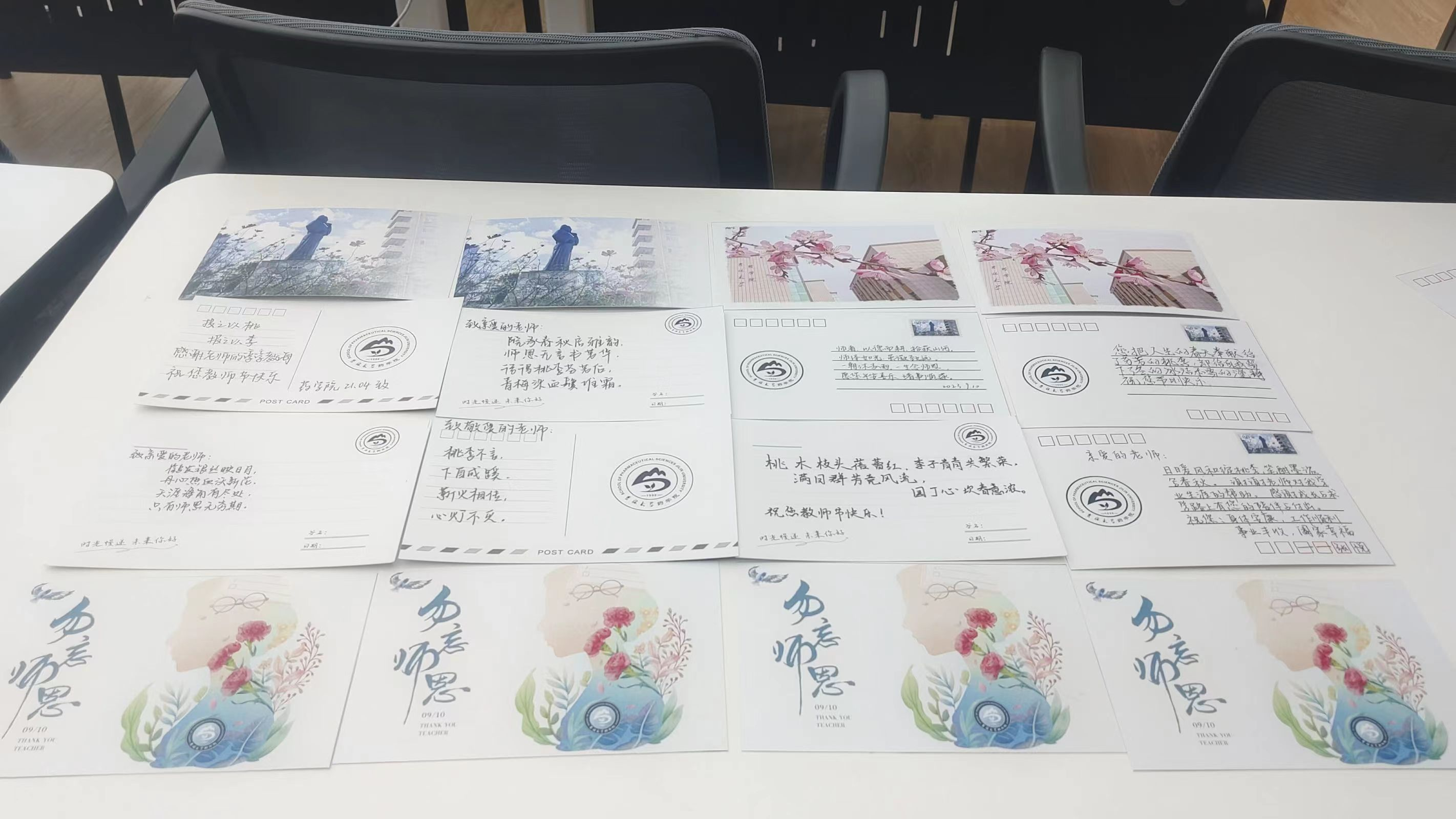 活动结束后,工作人员收集、整理盛满情谊的明信片。书写完的明信片可以亲自赠送给老师表达感谢;也可以不指定赠送的老师,由学生干部代赠给学院各岗位的老师。
