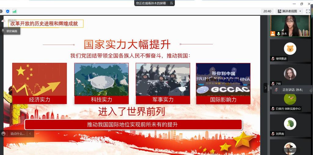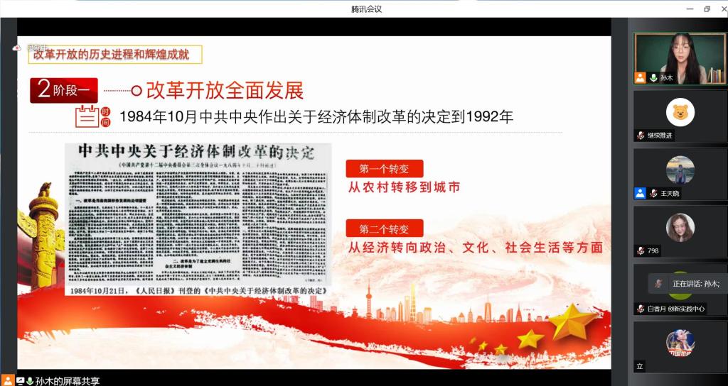 马克思主义学院2021级博士研究生孙木博士以《新时代关于全面深化改革开放的伟大成就》为题,向我们详细讲述了改革开放至今,我国取得的系列伟大成就。