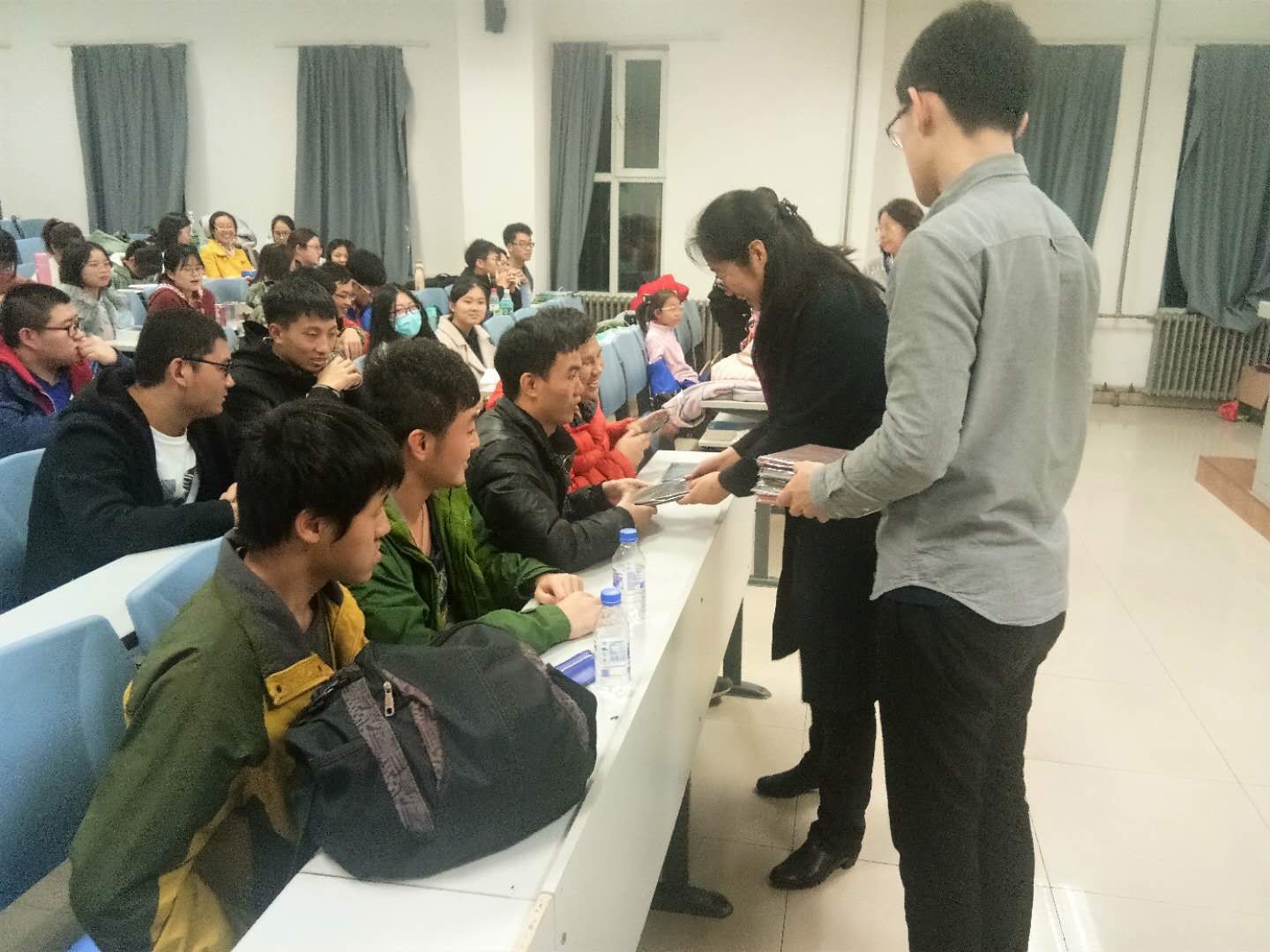 药学一班同学们也通过多种方式,或通过朗诵,或通过诗词,或通过音乐,一一交流了自己的感想。最后,全体师生合影留念,本次班会在感动与温暖的气氛中落下帷幕。