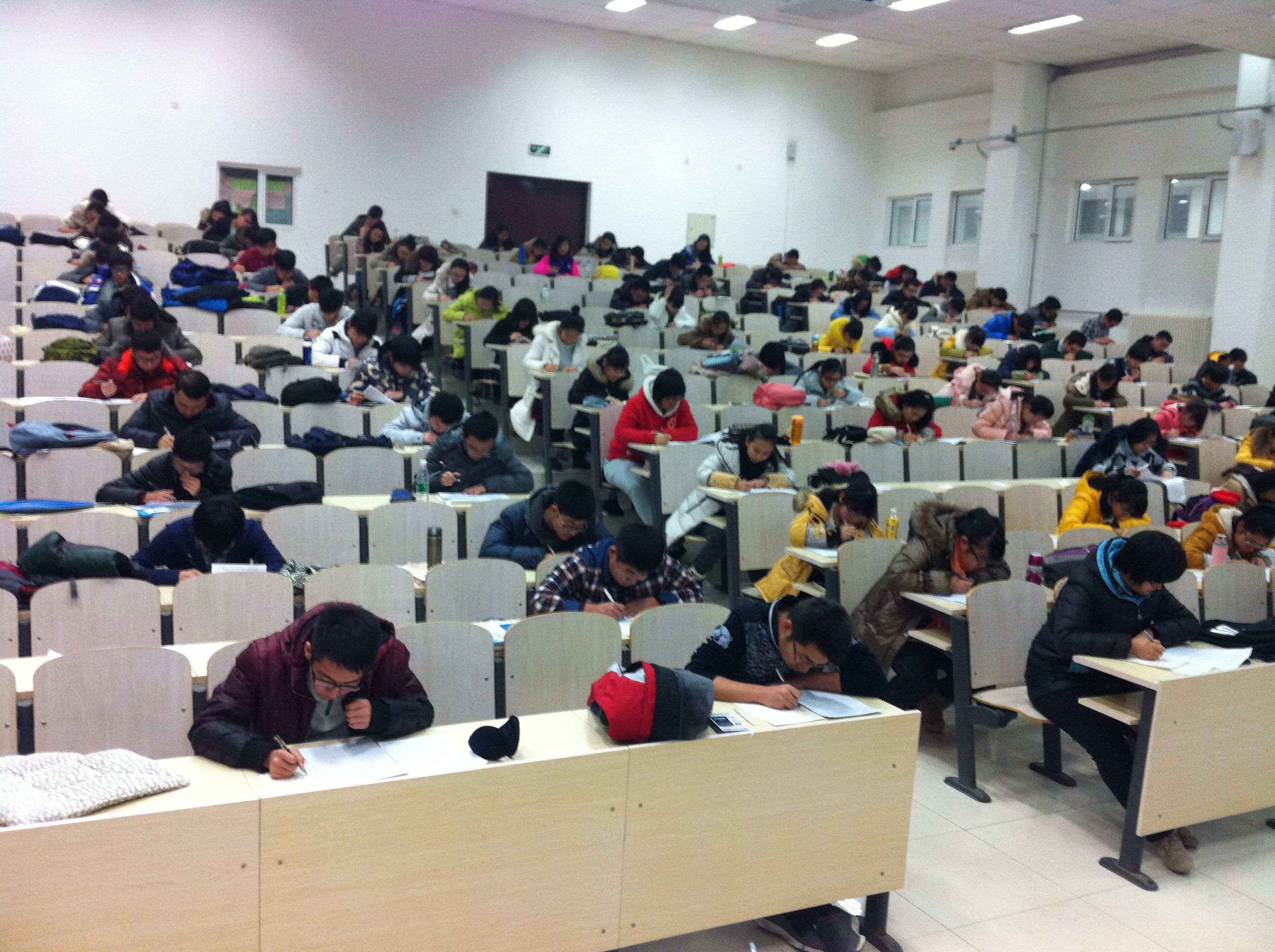 12月2日晚六点,正妹AV 学习部在李四光教学楼第一阶梯教室组织2014级全体新生参加了本学年第一学期的模拟考试,本次考试严格按照大学考试标准进行,由正妹AV 2014级导员宋原蕾老师亲自担任监考老师。本次模拟试题由正妹AV 学生会学习部负责制定,试题分为医用高等数学、无机化学两部分,考试时长为两小时。