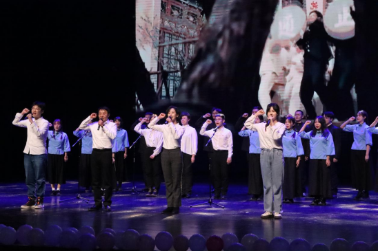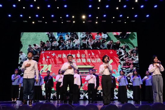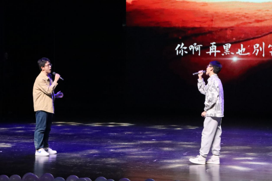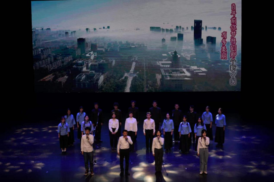 晚会以合唱《错位时空》收尾,马杰院长、杨晓虹老师、王托老师、各年级辅导员与21级、22级和23级同学共同完成演唱。星空之下,我们仰望无数先辈走进风雨硝烟,创造梦中的新天地,如今尘埃落定,国泰民安,映出我们心中共同的美好愿景。是先辈的负重前行,才有我们今天的岁月静好,先辈们的付出,我们必将牢记在心。