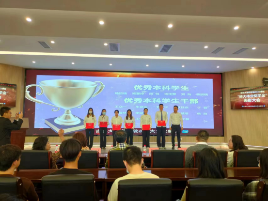 党委书记曲渊立为优秀本科学生干部颁奖。