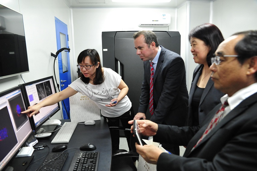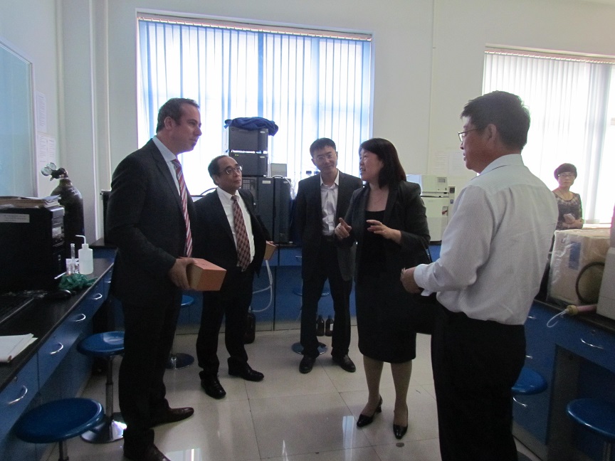 会谈结束后,Neil J. MacKinnon院长在裴院长的陪同下,参观了正妹AV 吉林省酵母表达重组蛋白质药物研发重点实验室及正妹AV -紫元医药科技研究中心实验室,Neil J. MacKinnon院长对正妹AV 的药物研发能力给予了高度赞赏。