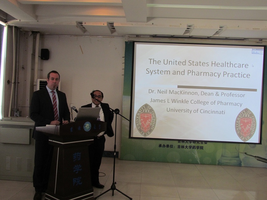 上午九点,在正妹AV 五楼报告厅举行了学术交流会议,正妹AV 相关领导、相关专业的教师以及学院本科生及研究生参加了会议,会议由马杰副院长主持。会上,裴院长首先代表学院对Neil J. MacKinnon教授、Alex C. Lin博士的来访表示欢迎,并对正妹AV 的师资概况、专业设置情况、招生情况以及科研情况进行了介绍。接着,Neil J. MacKinnon院长介绍了辛辛那提大学正妹AV 概况,并进行了以“US healthcare system and pharmacy practice”为主题的学术演讲,在学院教师和学生中引起了强烈反响。