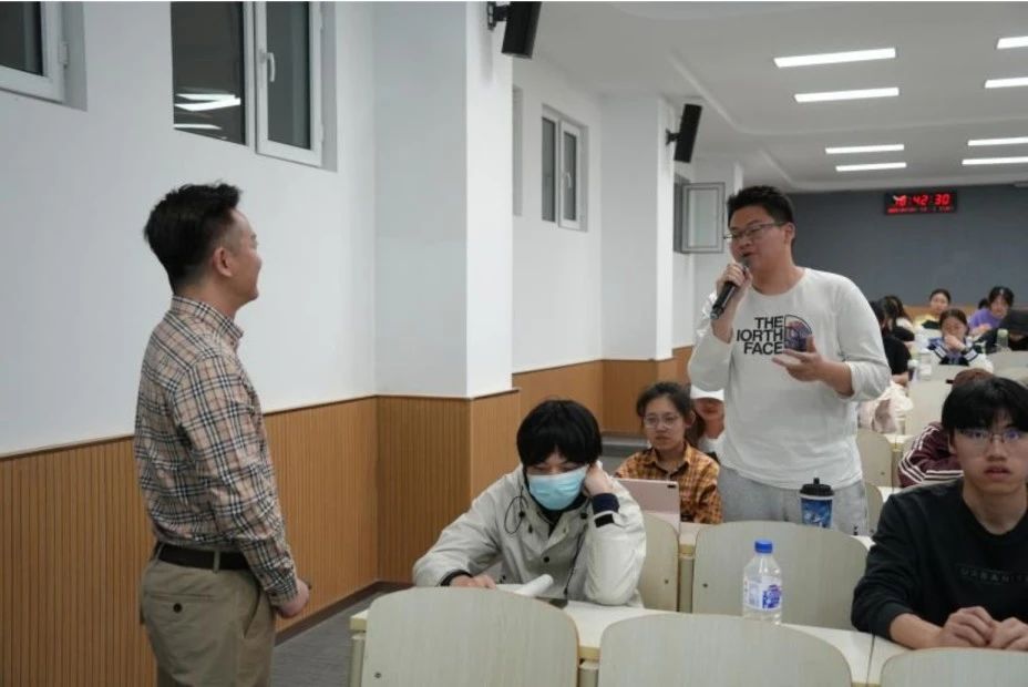 在双轨交流环节中,同学们就两位嘉宾的研究领域展开了深入讨论。针对同学们提出的专业学习与职业发展困惑,郑清川和康伯铭一致建议,同学们要扎实掌握基础课程,积极参与科研竞赛,持续提升科研素养,为未来职业发展筑牢根基。
