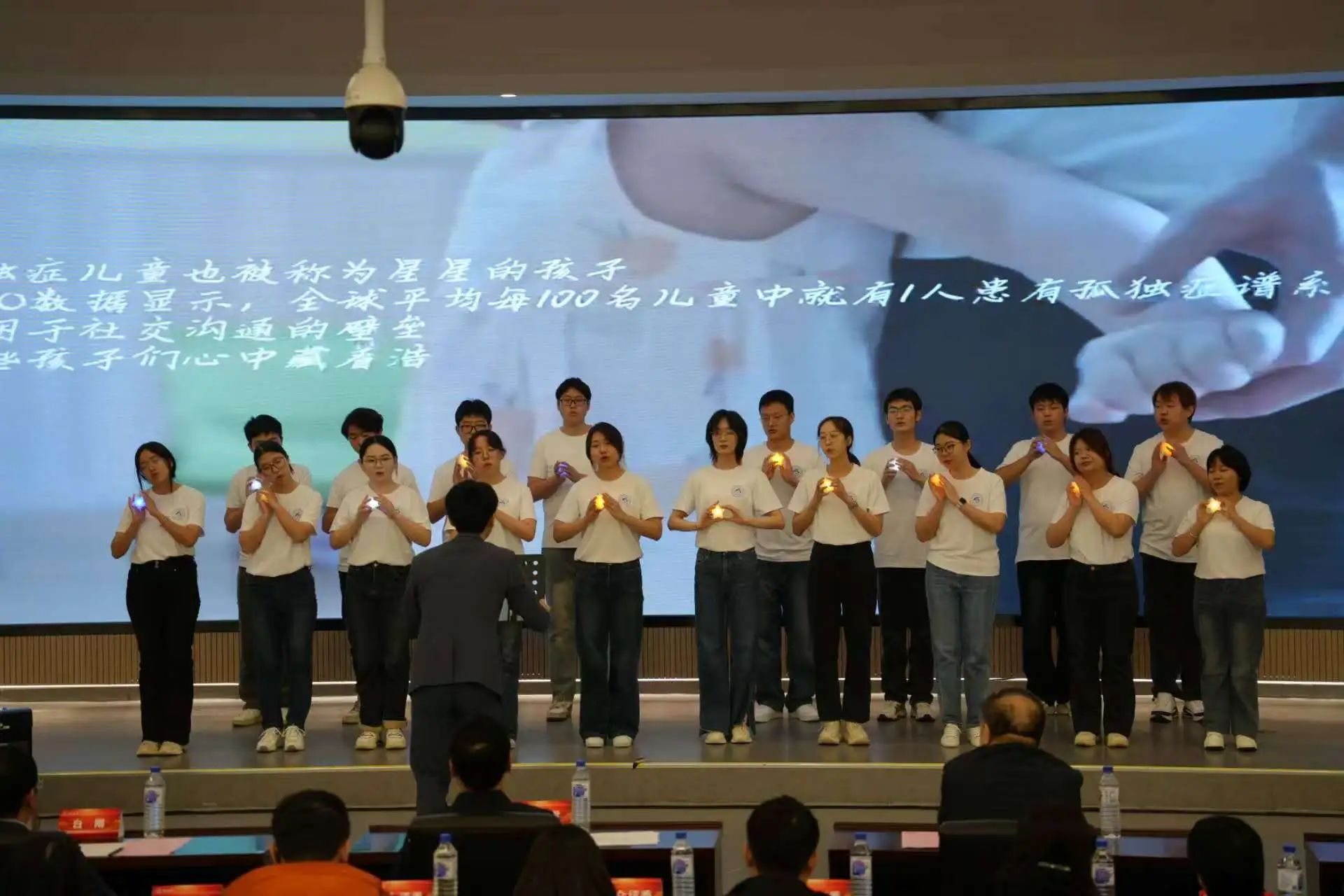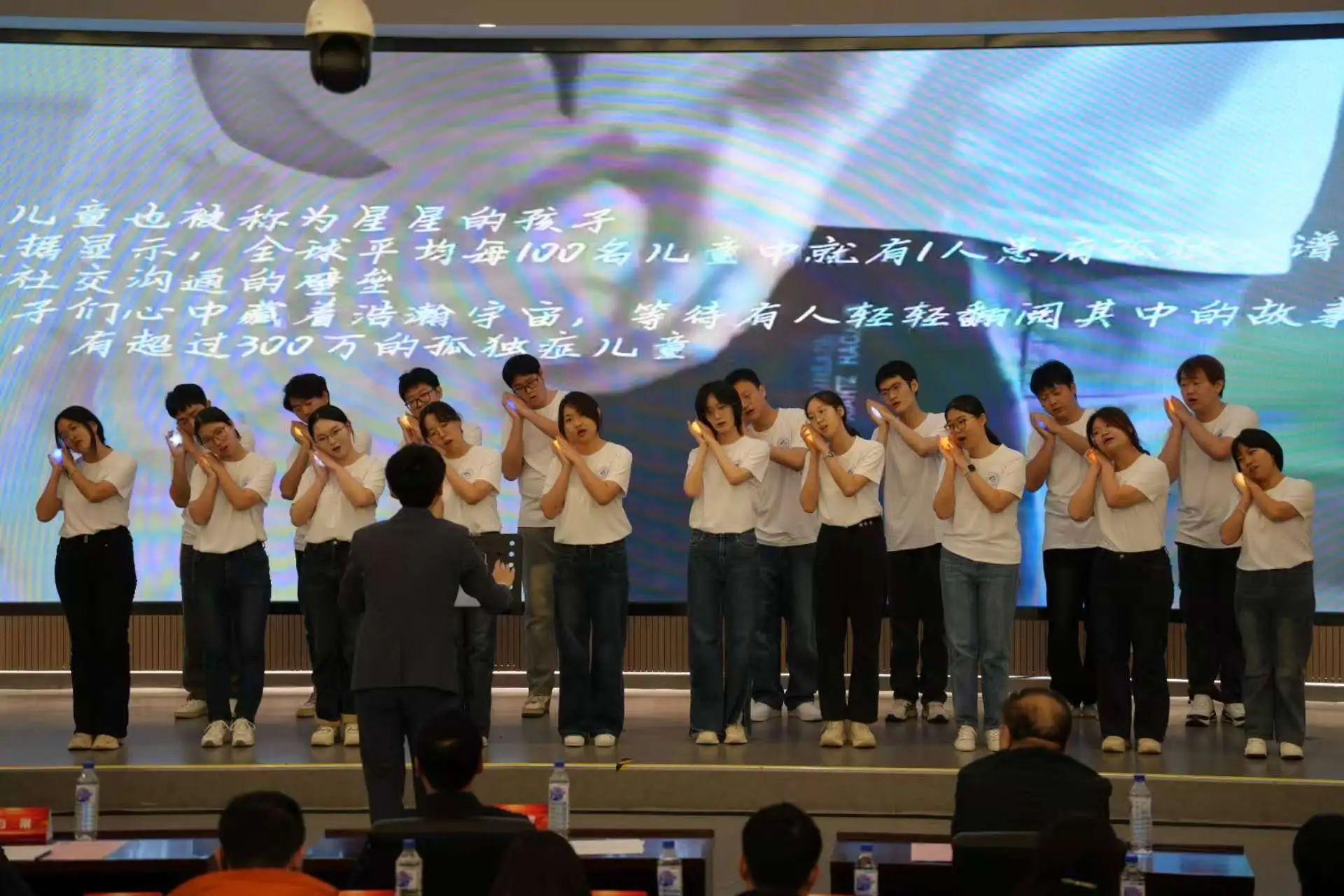 “药澜新声”合唱团以歌舞演绎《我有一个装满星星的口袋》,在第18个世界孤独症关注日(4月2日)即将到来之际,为师生们诉说来自“星星的孩子”的心语,呼吁大家伸出援手,奉献爱心,为“星星的孩子”照亮前行的道路。