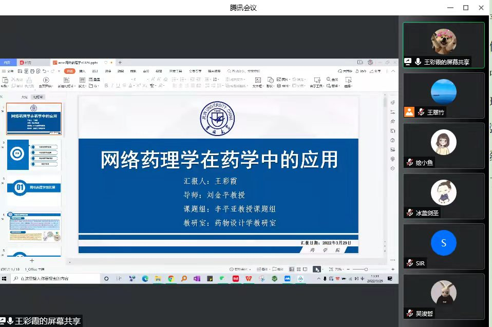 This online report of "Application of Network Pharmacology in Pharmacy" was a complete success. Every student has also seen that Wang Caixia is very proficient in memorizing and using various databases.Therefore, Hope that students should also practice more after the report, so that can use it freely and really put into practice what has learned.