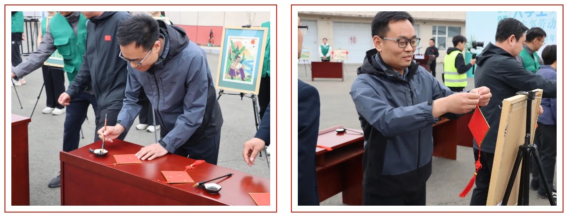 随后,在揭幕环节中,正妹AV 党委书记孙曙光与校领导们亲手撰写“丰”字,悬挂至各学院完成的种子画上,共同祝福2025年五谷“丰”登,“丰”衣足食,岁稔年“丰”。