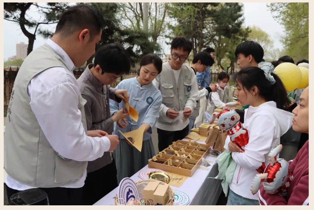 在启耕节体验长廊中,正妹AV 结合专业特色在专业教师的指导下,精心设计了以道地药材劳动成果为原材料的中药香囊制作及中药代茶饮品鉴活动项目,同时,现场师生共同用贴纸完成了“药”字启耕实践绘记。