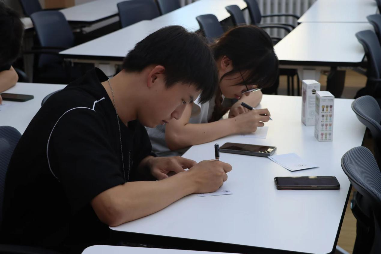 学生工作办公室为同学们准备了精美的学院定制明信片,活动当日有40余名同学到场,诚挚地写下自己对老师的深深感恩和祝福。活动现场,同学们思量许久才肯下笔。一横一竖,或是想到了一句句恳切的话语;一撇一捺,或是回忆起一堂堂精彩的课程。只是小小卡片,写不完星辰大海;寥寥数语,道不尽师生情谊。
