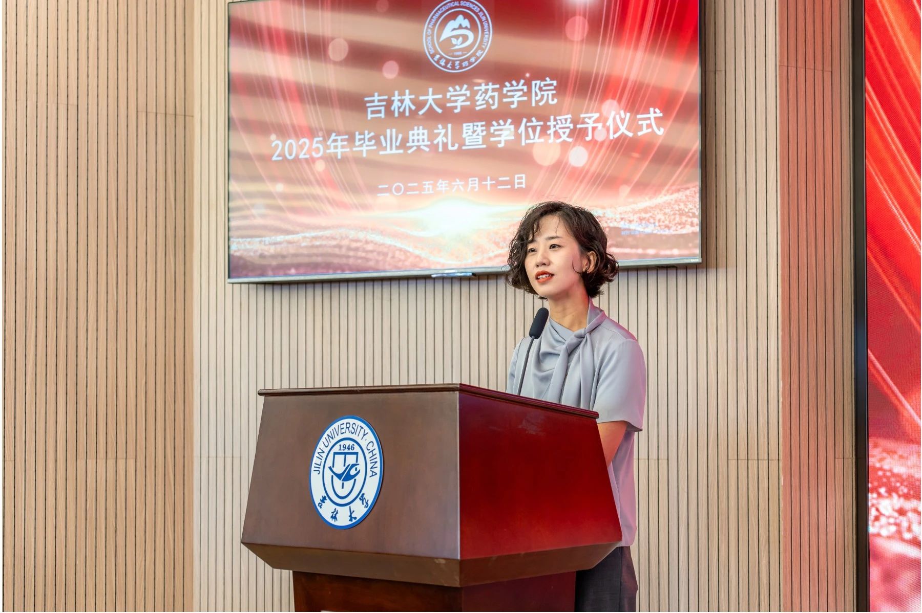 在师友寄语环节,教师代表王志寒深情寄语全体学子。他勉励大家始终牢记求学初心,在未来的人生道路上保持乐观进取的精神风貌。优秀毕业生代表姜姗珊同学上台发言,言辞恳切地向悉心栽培的学院和母校致以诚挚谢意。她表示,在未来的征程中将继续砥砺前行,为梦想全力以赴。在校学生代表武梦瑶同学也送上了对毕业生们的美好祝福,鼓励大家勇敢追逐梦想,不断攀登人生高峰。